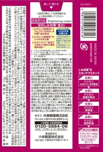 Active ingredients: L-ascorbic acid 2-glucoside, arbutine, tocopherol acetate (other ingredients) Sodium hyaluronic acid, oil soluble licicose extract (2), borowood extract, beeswax, plun enzyme decomposes, sage extract, triethylhexanate glyceryl, BG, SE stearate gryl. Serin, Stearine Acid, PEG stearate, dizlinolic acid (phytosteryl/isosteryl/cetyl/stearyl/behenyl), Glyceryl stearate, setanol, dimethicone, glycocyltrehalose, water filled starch depletion mixture solution, phenoxyethanol, sodium steroyl glutamate, paraben, TED. A-2Na, No Sodium water sulfite, hardening oil, behenyl alcohol, potassium hydroxide, ethanol, purified water